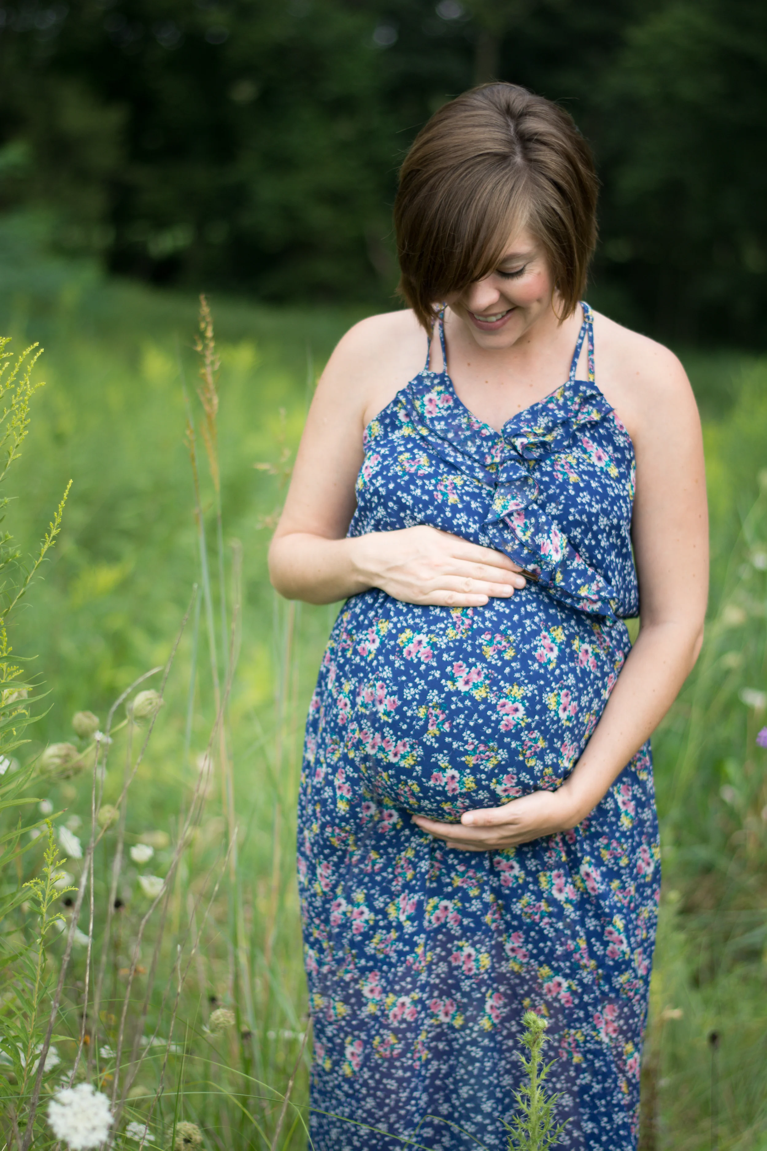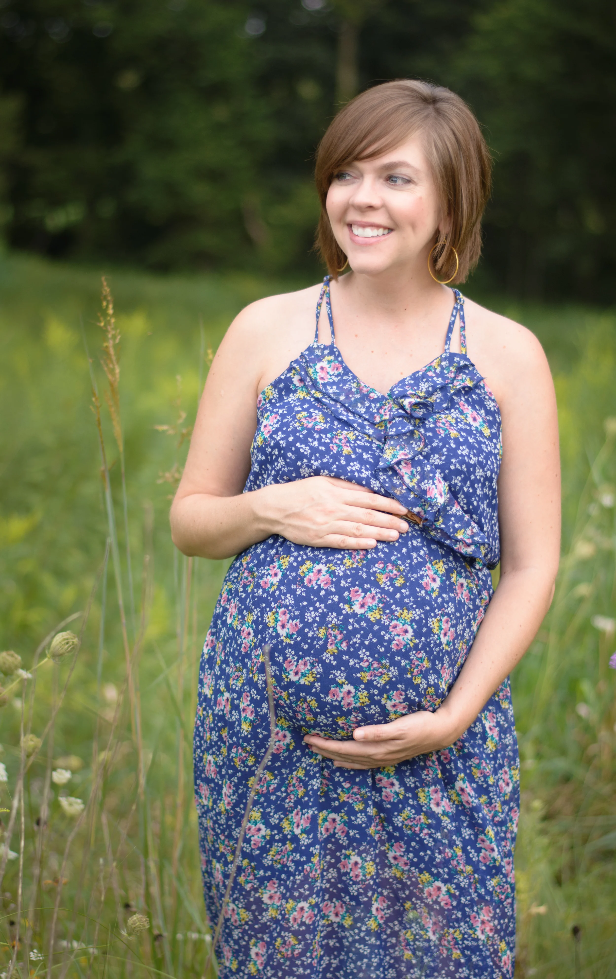 I wore a dress I was comfortable in and didn't worry so much about hair and makeup. The belly was the star of the show. We took these photos when I was 35 weeks pregnant. I think that was a good time frame. The belly was big enough to capture the pregnancy but I didn't feel as gigantically pregnant as I currently do. Like I've reached the T-Rex stage of pregnancy where my arms are not proportionally long enough compared to my torso. All of my pharmacy patients seem concerned that the baby will fall out of me at any moment. I've started answering "What? I'm not pregnant." or"3 months from now." to the "When are you due?" question that I get 1500 times per 8 hour shift.